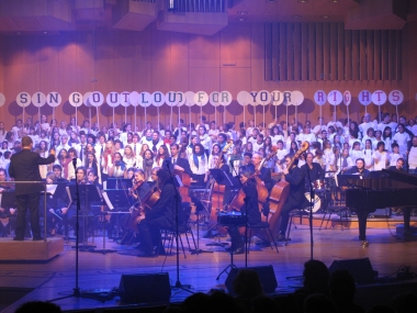 Ein musikalisches Gesamtkunstwerk der nahezu 300 Mitwirkenden entfaltete sich vor und zum Teil auch mit den Zuschauern, ein lebendiges Fest, das von Freudentränen bis Gänsehaut wohl viel Unter-die-Haut- und an's-Herz-gehendes bereithielt, ein vielstimmiger Festakt für die Rechte von Kindern und Jugendlichen, dessen fulminantes Finale alle im Saal zu unüberhörbaren Lautsängern machte. Unvergesslich, unvergleichlich, unüberhörbar – danke, danke, danke an alle Mitwirkenden und Unterstützer und natürlich – keep on singing
